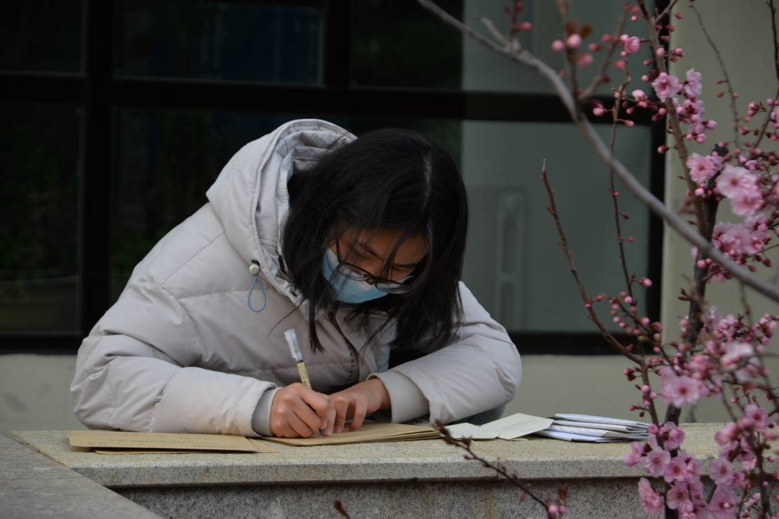 考虑当前威海的疫情防控形势,学院于4月6日在学院门口设置投信箱,学生现场完善投信地址后亲手将信件封存投放于信箱。待春暖花开疫情过后,由学院将信件统一寄出。