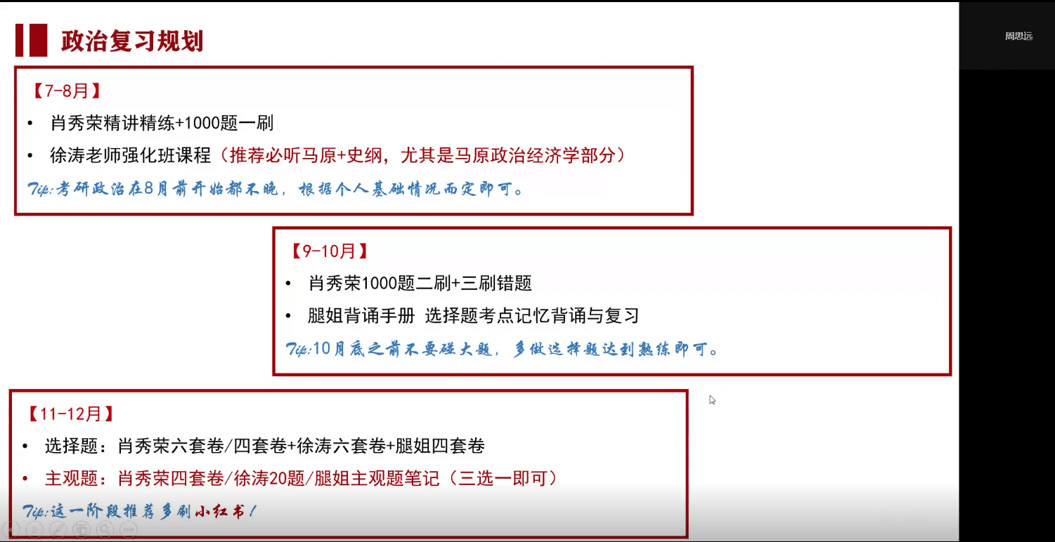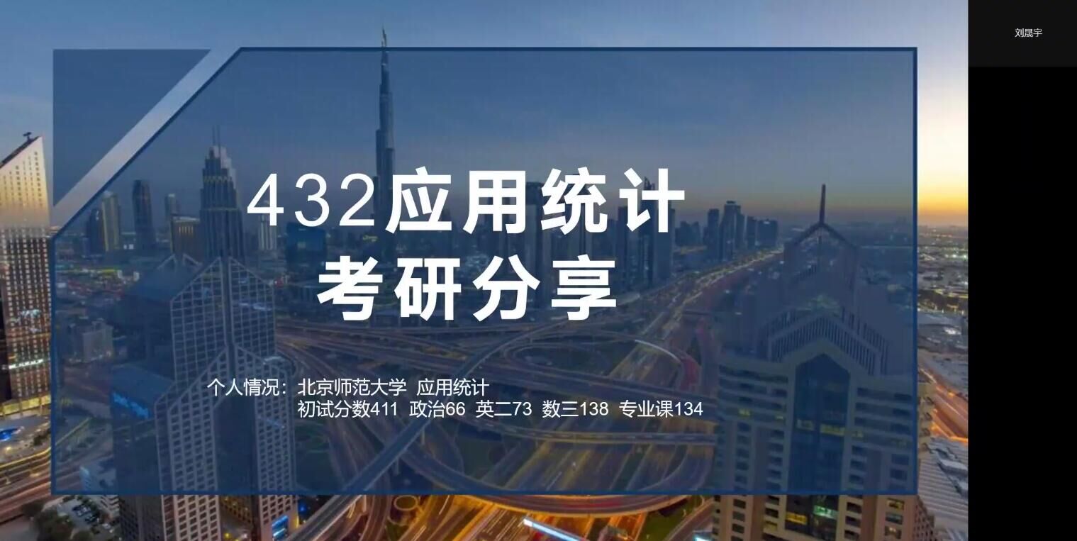 会上,考研至清华大学、北京大学、中国人民大学、爱游戏ayx官方网站、北京师范大学等高校院所的8位同学依次进行了分享,他们结合个人考研经历,就院校选择、复习规划、时间管理、学习资料的推荐和心态调整等方面展开了细致地介绍。李景祎、王世博、刘晟宇重点介绍了统计学方向考研经验,并在在院校选择方面,建议考研的同学对自身实力进行客观评估,分析不同高校不同学院专业考核科目、报考情况和录取比例,理性选择;周思远、唐炜权以自身为例,重点分享了跨专业考研的经验,在时间规划、复习进度、课程资料等方面提供了针对性建议,鼓励大家在专业选择上以兴趣为驱动,不要盲目跟从;贾亦真、彭威和谷成旭重点介绍了爱游戏ayx官方网站数学方向的考研情况,对专业课、数学、英语、政治每门科目的复习规划、复习方法等进行了耐心讲解。同时,与会嘉宾强调了获取信息的重要性,也向同学们推荐获取考研相关信息的渠道,分享了自身考研过程中经历的困难,总结了复习技巧和应试的技巧,鼓励同学们在漫长的复习过程中对自己保持信心,劳逸结合,科学、及时地调节焦虑等情绪。答疑环节中,与会同学认真回答了大家提出的问题,解答了同学们对考研的种种困惑,并交流了考研过程中的心得体会,所有嘉宾向即将考研的同学们表达了真挚的祝福。