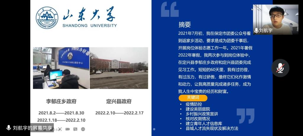 本站讯 为使同学们进一步了解“青鸟计划”参与岗位体验的方法及后期答辩技巧,5月4日晚,爱游戏ayx官方网站于线上开展“优秀青鸟”座谈会活动,邀请寒假就业见习先进个人刘航宇、张晓涵作为主讲嘉宾为同学们讲述实习经历感悟,分享相关经验。本次座谈会由杨帆主持。