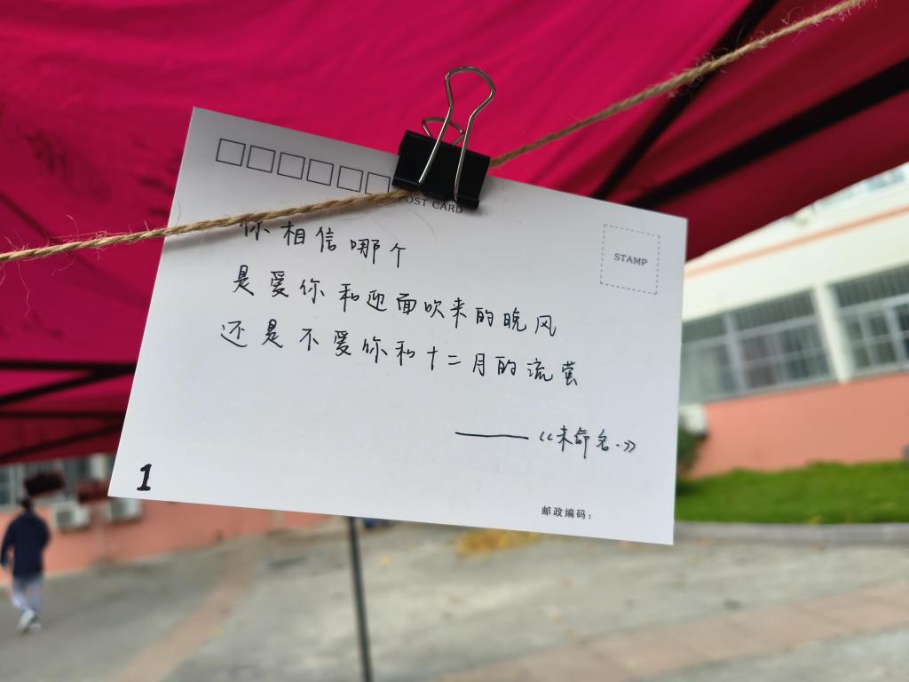 本站讯 为进一步丰富学生课余生活,展现山大学子的青春风采,10月29日至11月18日,爱游戏ayx官方网站举办了为期三周的“情诗三行,诉事解压”三行情诗系列活动。此次活动通过传统书信与网络平台结合,充分利用媒体媒介作用,以三行情诗为载体,鼓励同学们用语言形式抒发内心的情感和压力,缓解焦虑情绪。