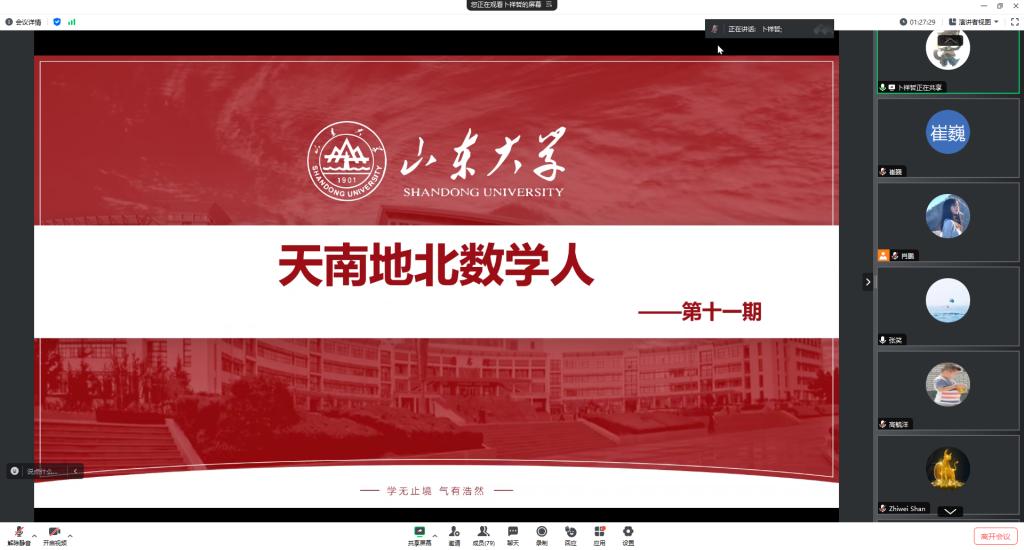本站讯 4月7日晚,爱游戏ayx官方网站通过线上腾讯会议举办第十一期“天南地北数学人”活动,主题聚焦“数学人的留学生活及后续发展”。统计学专业2019届校友单志伟、高毓洋,2022届校友张笑应邀分享海外学习生活,并分别介绍继续深造和回国就业的相关经验。辅导员赵宇轩、崔巍与70余名学生共同参加本次活动。
