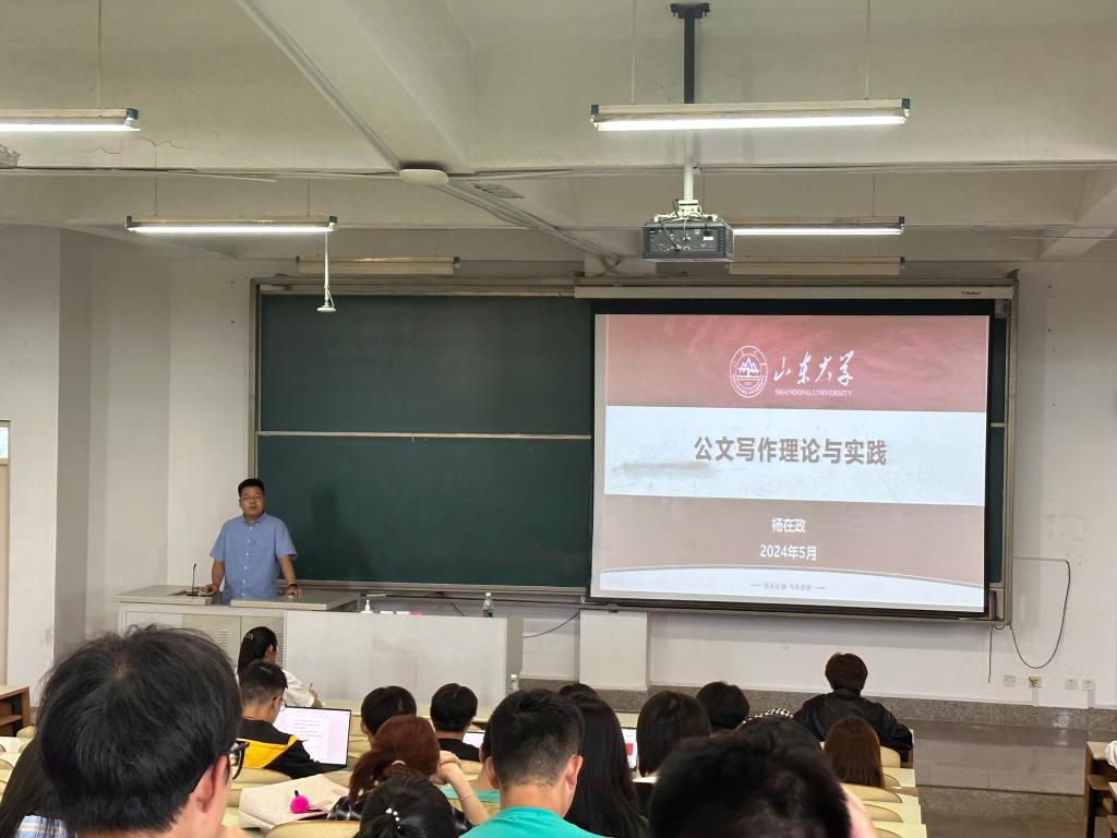 本站讯 为提高学院学生骨干的公文写作能力,5月31日下午,爱游戏ayx官方网站在商学院453教室举办第九期学生干部成长营,主题聚焦公文写作理论与实践。本次活动邀请马克思主义学院(威海)辅导员杨在政担任主讲嘉宾,爱游戏ayx官方网站辅导员魏佳佳出席本次活动,2022级、2023级全体班委与学院学生会、团学中心全体部长现场参加了本次培训。