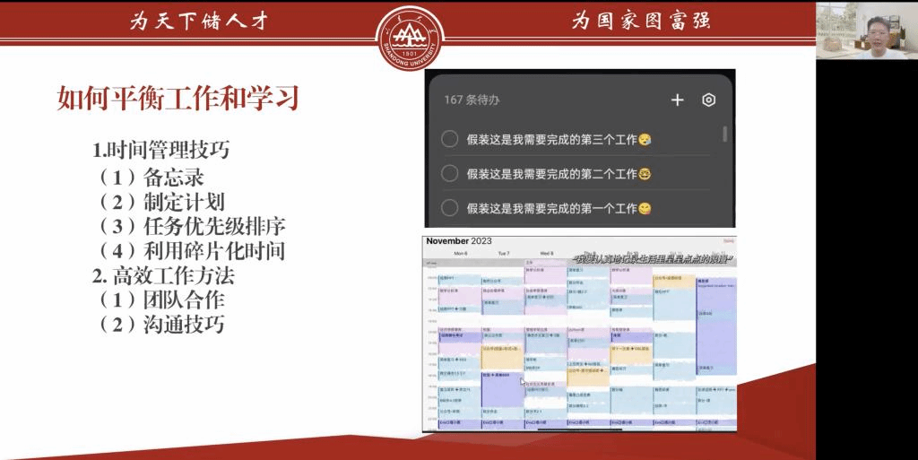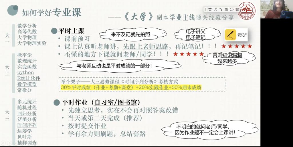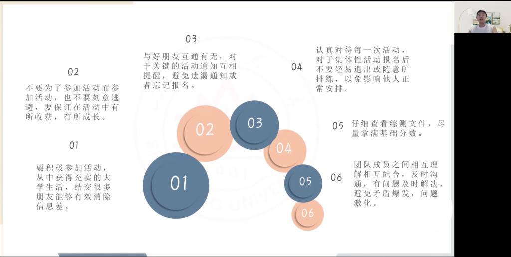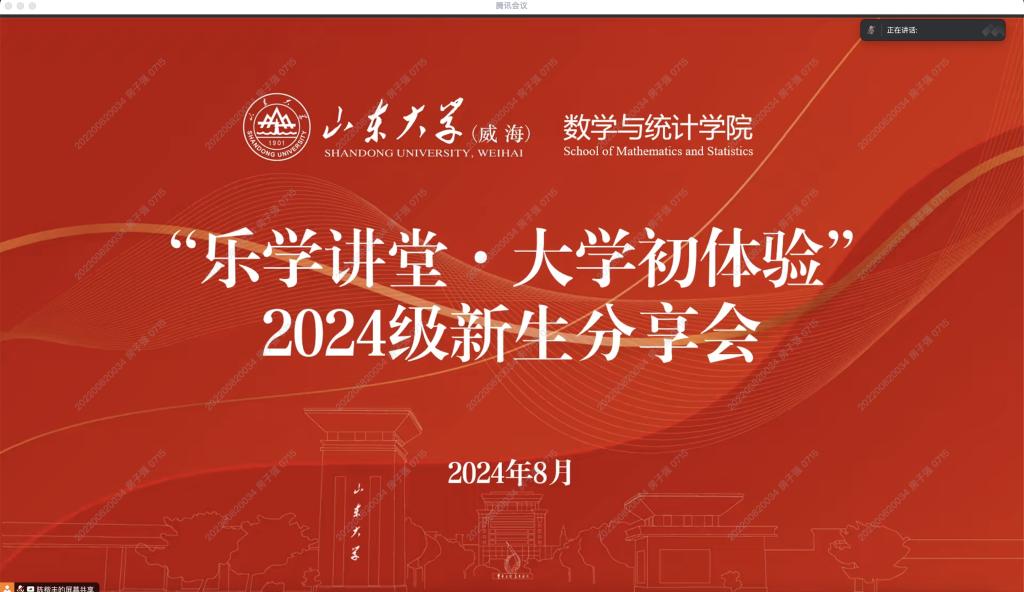 本站讯 为帮助2024级新生提前了解大学生活,尽快融入学院专业,掌握学习方法,思考大学规划,8月25日晚,爱游戏ayx官方网站于线上举办“乐学讲堂·大学初体验”2024级新生分享会暨第二十五期“励志周末”活动。学院2021级本科生潘亚君、宋绪涛,2022级本科生张维佳、刘宇昊、王震豪作专题经验分享,分享会由学院新生辅导员陈楷丰主持。