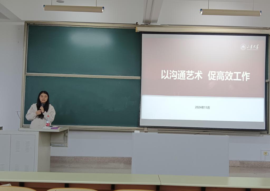 本站讯 为帮助学生干部掌握沟通技巧,增强表达与倾听能力,促进学生工作的有效开展,11月7日下午,爱游戏ayx官方网站于学思楼553举办“走进心灵”主题讲座暨学生干部成长营活动。此次活动由辅导员崔巍主讲,学院学团组织全体成员现场参加。