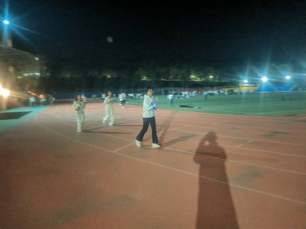 参与学生陆续抵达并签到后,工作人员为其发放荧光手环,并带领同学们进行充分的热身运动,为夜跑做好准备。准备完毕后,主持人向全体参与者详细阐述了本次荧光夜跑的活动宗旨,重点说明了夜跑路线安排及安全规范要求,特别提醒同学们始终将人身安全置于首位,若在跑步过程中出现任何身体不适,应立即向现场医疗保障人员寻求帮助。活动正式开始后,同学们按照既定路线有序开跑,每位同学都精神饱满、步伐矫健,在跑道上尽情挥洒汗水。夜色中,点点荧光连成流动的光带,展现出山大学子的青春活力。活动过程中,大家相互鼓励、并肩奔跑,展现出团结友爱的集体氛围。
