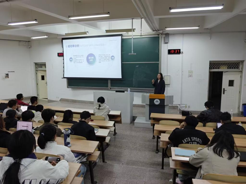 本站讯 为帮助学生明晰未来发展方向,科学规划升学路径,10月22日晚,爱游戏ayx官方网站于学思楼356室举办“职引未来:升学路径规划与备考策略”名师分享会。本次活动邀请三位升学规划导师由如柠、苏青竹、宋无为,围绕考研、留学与语言备考三大主题展开讲解,学院60余名学生参与本次活动。