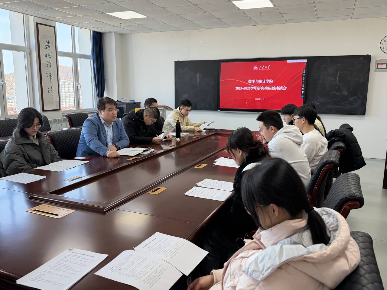 最后,刘洁文表示,学院始终高度重视研究生权益保障工作,此次座谈会收集的意见建议将作为文件修订的重要参考。今后,学院将继续优化相关管理制度,为研究生的成长发展提供更坚实的保障,助力大家潜心治学、全面发展。