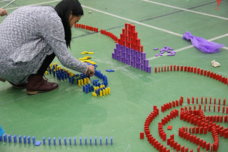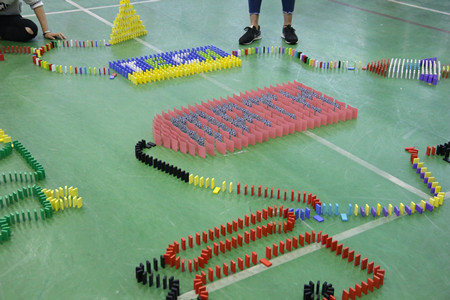 活动伊始,各参赛队在队长的带领下进行了简单的团队自我介绍,展示出了团队的风采。在各参赛队伍依次进入各自的比赛场地后,主持人宣布比赛正式开始。本次比赛共分为两个环节。第一个环节为骨牌码放,各参赛队根据自己的设计图纸进行骨牌码放,限时一小时。在这一环节中参赛队员积极投入,认真专注。在此期间,主办方播放了许多国内外优秀多米诺作品的视频,让在场的同学们感受到了多米诺的无穷魅力。第二个环节为骨牌的寓意解说与推倒。骨牌摆放完毕后,由各参赛队代表对自己队伍摆放图形的寓意进行解说,限时三分钟。评审嘉宾就团队骨牌图形设计、寓意解说、图形创意以及是否成功倒塌等方面进行打分。最终,“梦想启航队”获得了本次比赛的一等奖。至此,本次比赛落下了帷幕。
