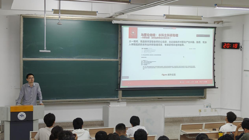 张维佳从“前置工作”“内容结构”“撰写技巧”及“亮点特色”四个维度出发,向同学们讲解了如何进行商业计划书的写作。在讲解计划书写作细节的同时,他向新生讲解了如何进行项目规划,为同学们扫清诸多疑惑。路宇轩以“科研立项的选题、推进与结题”为主题,结合自己的科研经历,与同学们分享了自己从科研助理到投稿第一篇SCI的心路历程,重点就“科研结题”环节,向新生强调了科研立项过程中的计划性,带领新生厘清了科研成果与科研立项、实质产出与形式逻辑之间的关系。