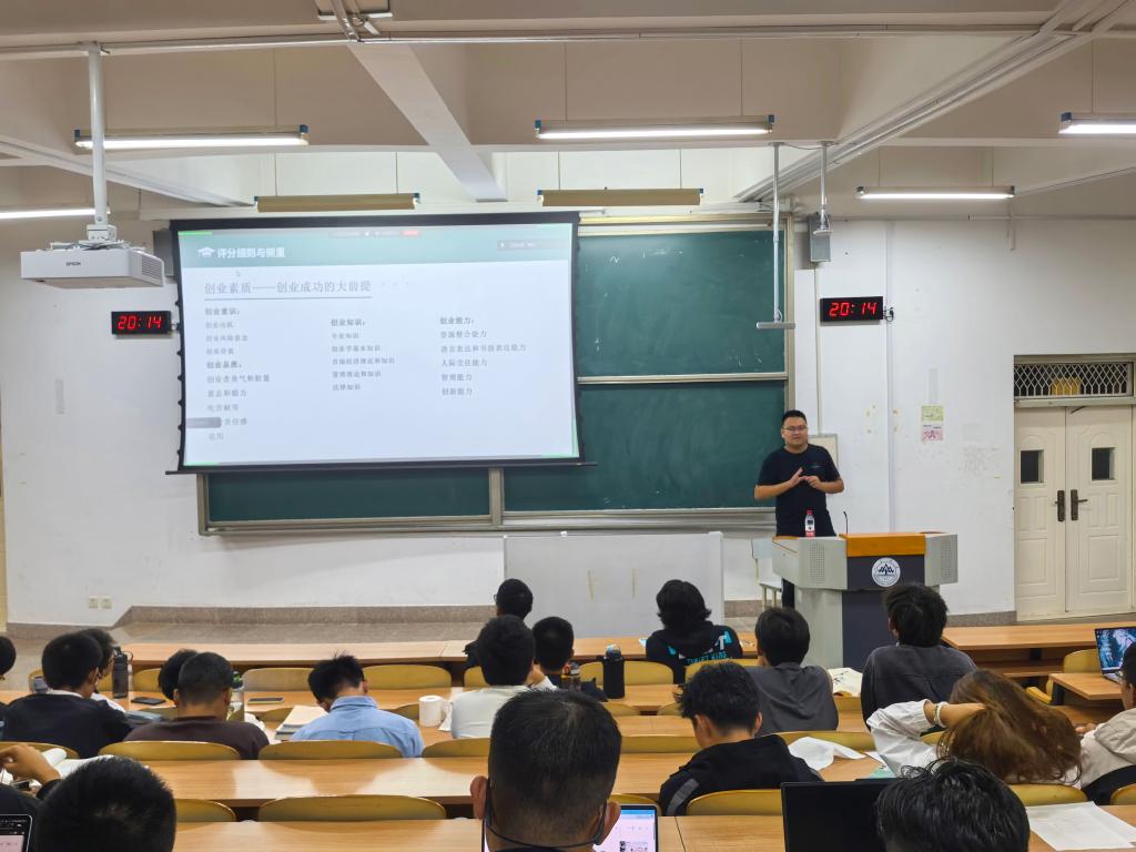 吴博森聚焦“什么是创新大赛?”“为什么我要参加创新大赛?”和“我该如何参加创新大赛?”三问靶向发力,结合自身的科创项目为同学们提供了宝贵经验分享,让同学们更加熟悉了参与创新大赛的全过程。柳宿辰和范少飞从评分细则与侧重点、PPT制作与展示、答辩要点与注意事项三个方面分享了如何更好地呈现科研结果。他们聚焦数理学科特点,结合其他学院的项目展示经验为新生拆解相关要点,帮助新生构建自身科创作品展示框架。