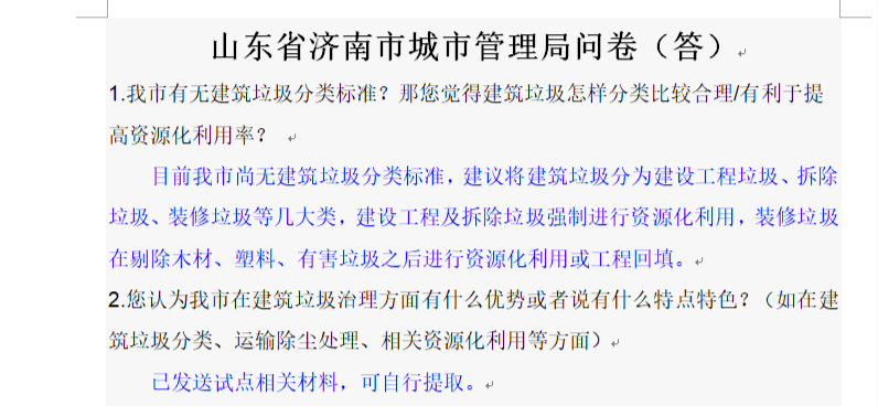 本站讯 为深入了解济南市、德州市、临沂市建筑垃圾的处理现状以及建筑垃圾资源化利用过程中存在的问题,并结合实际情况提出解决方案,8月20日9:00—17:30,爱游戏ayx官网城市建筑垃圾治理调研团调研了山东省济南市城市管理局、山东省德州市城市管理局、山东省循环经济协会、山东省临沂蓝泰有限公司共四家单位。受疫情影响,团队对济南市与临沂市的单位采用了线上访谈的方式,德州市城市管理局则为线下实地走访,团队队员段萌、苑浩月、王雪飞、王雨晴参与了此次访谈。