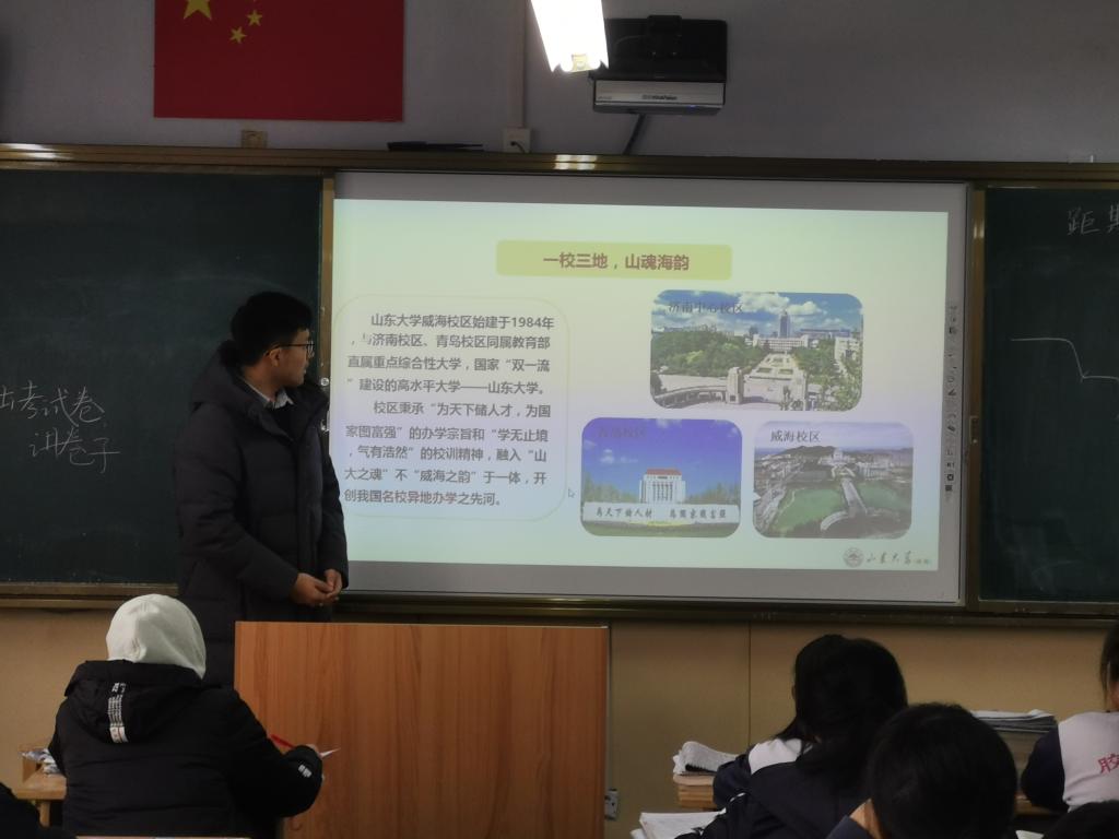本站讯 1月18日16:30,“相约山大·励志启航”爱游戏ayx官方网站(威海)优秀学子母校行“涌浪”队队员葛宝禄回到母校胶南市第一中学进行宣讲。本次宣讲是向高中的学弟学妹们介绍爱游戏ayx官方网站(威海),吸引更多学子来到我们美丽的山大,以及对他们即将面临的高考提出学习建议,祝愿他们高考取得优异成绩。