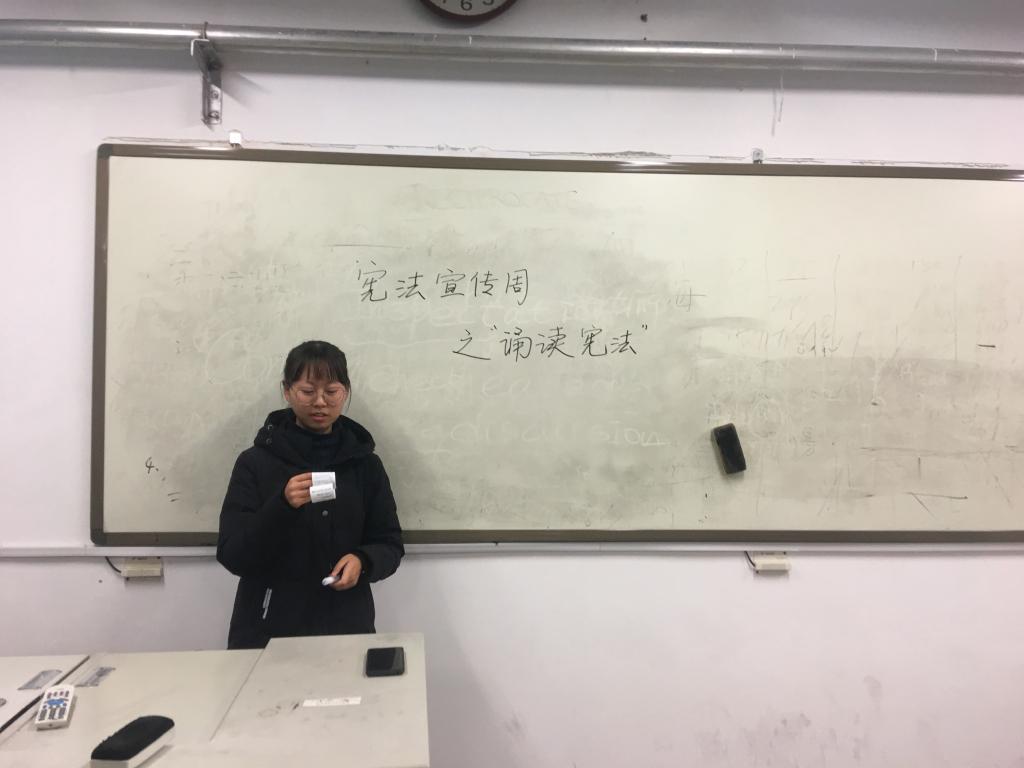 活动伊始,数学3班团支书王肖晴作开场致辞,简要介绍本次宪法晨读活动的背景和意义所在,鼓励大家积极主动了解、学习宪法。随后,团支部全体成员用铿锵有力的声音诵读宪法的部分内容,现场气氛庄严肃穆。“中华人民共和国是工人阶级领导的、以工农联盟为基础的人民民主专政的社会主义国家。”、“中华人民共和国的一切权力属于人民。”、“中华人民共和国公民在法律面前一律平等。国家尊重和保障人权”……一条条宪法条文读进大家的心中。最后,王肖晴同学对本次活动进行总结。
