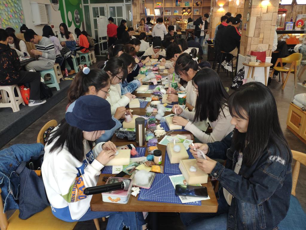 班会第一个环节为手工艺品制作,班级同学根据自身的兴趣可自由选择戳戳乐、油画、衍纸三种手工制作中的一种,并在专业人员的指导下进行制作。三种手工制作各有其趣,在一个小时左右的制作时间中,同学们都拥有了崭新的体验,动手能力得到了增强。