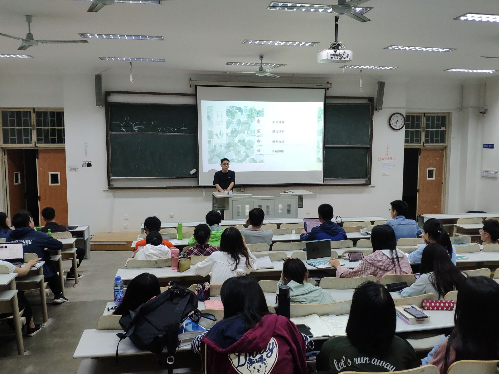 本站讯 5月19日晚,2018级信息与计算科学班与统计学二班于图东教学楼226共同召开了科研班会。本次科研班会由科研班主任刘昱和陈琰钰主持,主讲人为2016级行政管理专业的郭东旭,2018级信息与计算科学班和统计学二班全体同学参加。