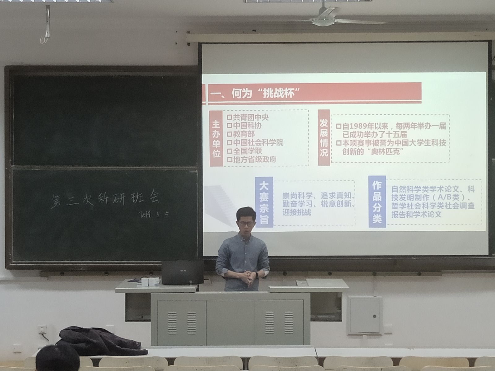 本次科研班会令全体同学们系统的了解了创青春大赛等全国性大赛,对比赛需要做的准备工作也有了较为全面的认识,有利于同学们未来更加自信地面对这些比赛。