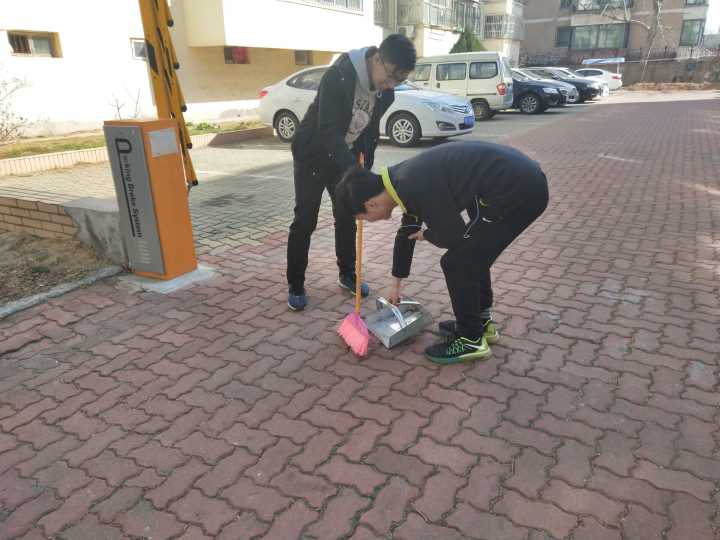在举办活动的前两周,班委们进行了讨论,与恒泰街社区负责人联系,就业委员刘洋洋提前对社区排布进行了实地考察。活动一周前,刘洋洋在班级发布了活动的举办通知,同学们积极报名。根据先前的考察,刘洋洋将同学们进行了分组。活动当天,同学们带着各种清扫工具在宿舍楼下集合,点完名后便向目的地出发。同学们干劲十足,在草丛、水泥地面将可见的垃圾进行了细致的打扫,然后同学们把建筑体墙面及防盗门上的各式小广告一一清理下来,社区环境得到改善。服务过程中,同学们收获了很多当地社区居民的认可。