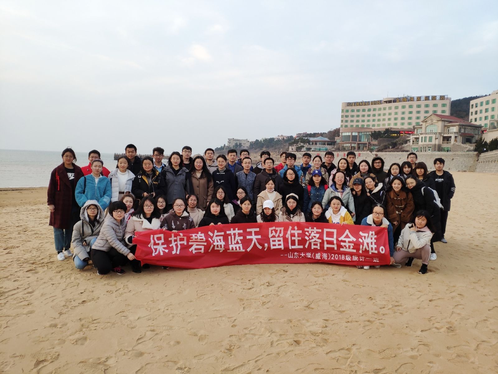 本站讯 2019年3月8日下午,为贯彻“雷锋精神”,2018级统计一班于金海滩举办以“保护碧海蓝天,留住落日金滩”为主题的清理沙滩垃圾志愿活动。本次活动由就业委员唐溢惟主持,班级全体同学参与。