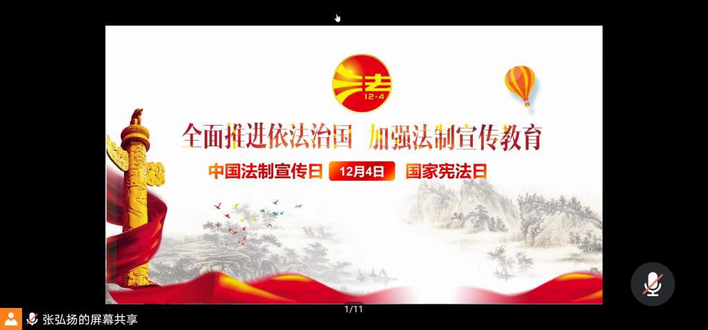本站讯 2020年12月8日下午17:00,爱游戏ayx官方网站2019级数学与应用数学班于线上开展了12月主题团日活动,此次活动主题为“全面推进依法治国,加强法制宣传教育——中国宪法日暨法制宣传日活动”。团支书张弘扬主持此次会议,数学与应用数学班全体团员参加。