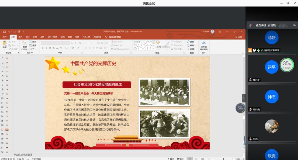 本站讯 3月24日下午17:00,爱游戏ayx官方网站2019级统计学二班开展“回顾百年党史,凝聚青春力量”主题团日活动,本次主题团日活动以线上会议的形式进行。本次会议由团支书乔靖轶主持,2019级统计二班全体同学参加了本次活动。