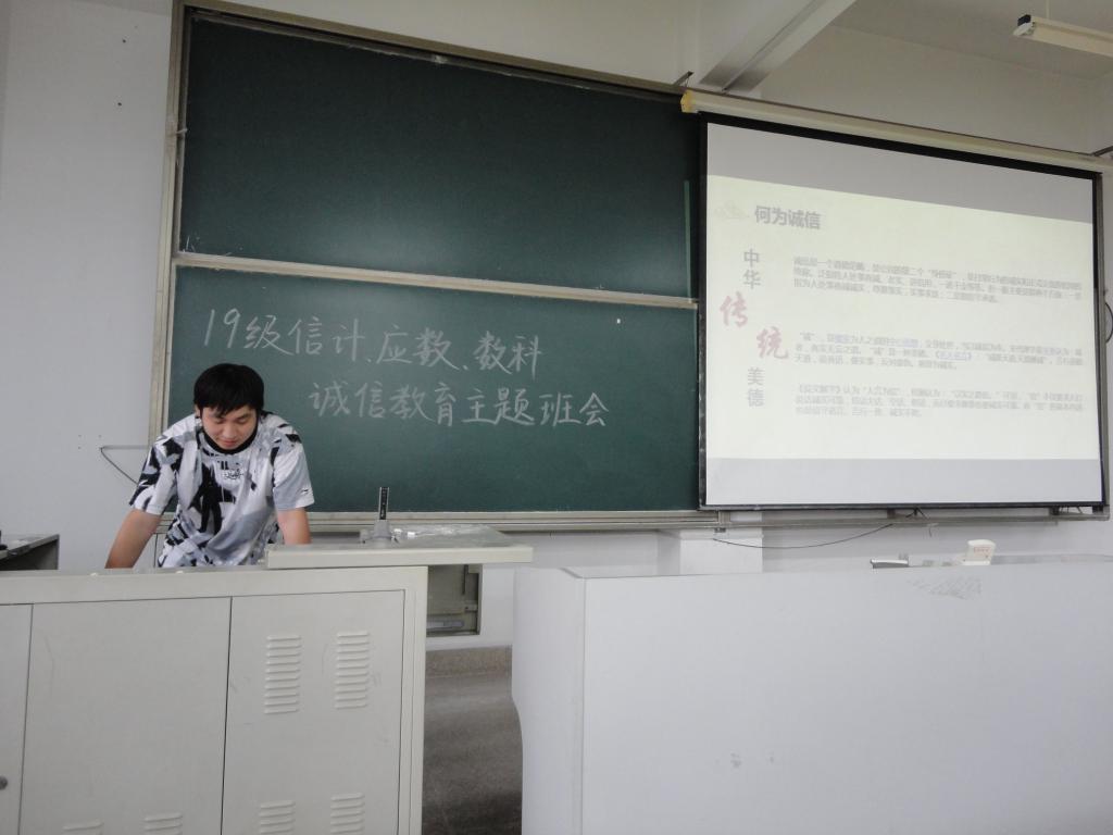 本站讯 2021年6月3日下午16:40,爱游戏ayx官方网站2019级信息与计算科学班、数学与应用数学班、数据科学与人工智能实验班共同在商学院553教室举办诚信教育主题团课。本次活动由信息与计算科学班班长杨智捷主持,辅导员王祎璠参加活动。