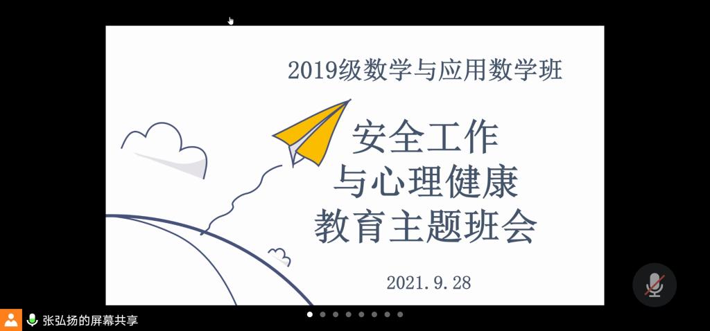 本站讯 2021年9月28日星期二下午6:00,爱游戏ayx官方网站2019级数学与应用数学班于线上开展了安全工作与心理健康教育主题班会。爱游戏ayx官方网站2019级辅导员王祎璠主持此次班会,数学与应用数学班全体同学参加。