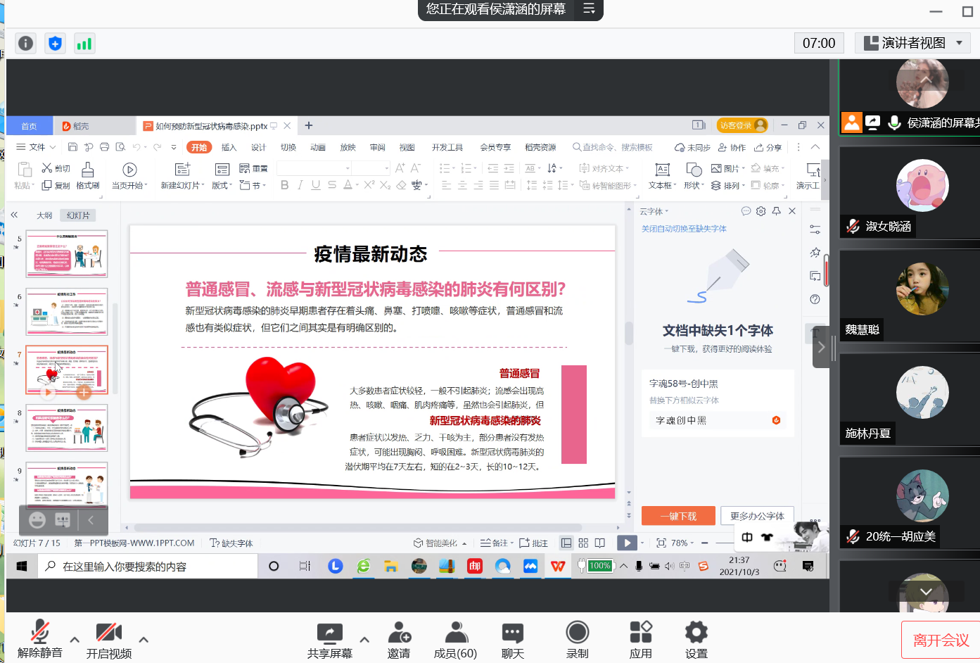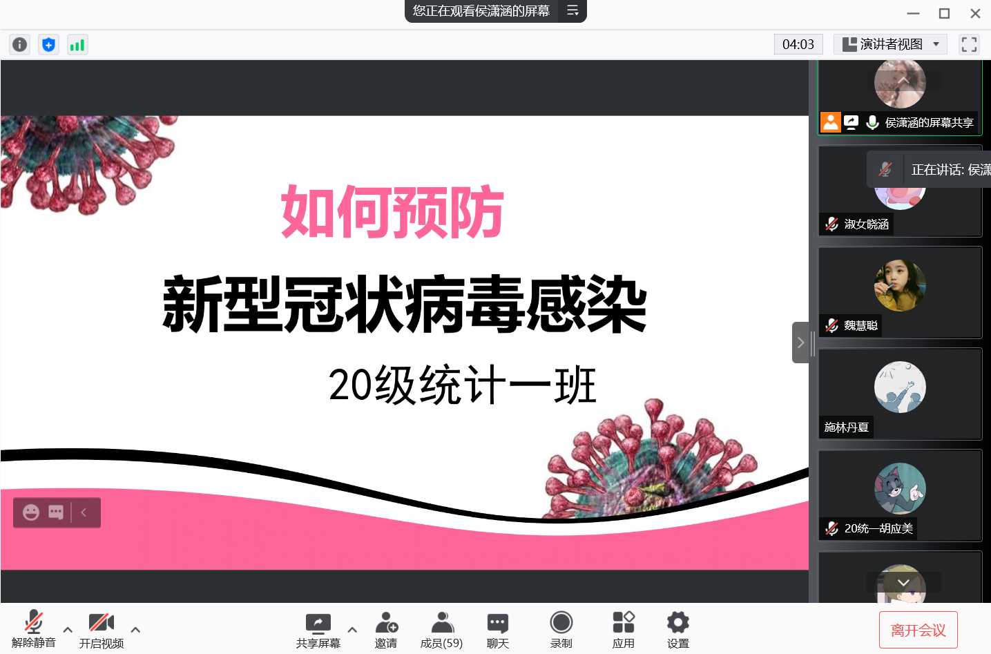 本站讯 10月2日晚,爱游戏ayx官方网站2020级统计一班举行线上“提高防疫意识,做好自我防护”主题团日活动,着重强调当前疫情防控的重要性以及正确防控措施。本次主题团日由团支书侯潇涵主持,全体团员参加。