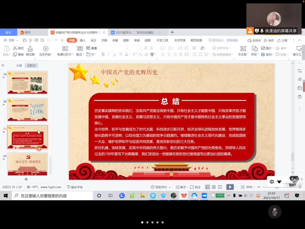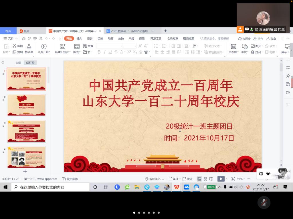 本站讯 10月17日晚,爱游戏ayx官方网站2020级统计一班开展“百年大党,百廿山大”主题团日活动,此次主题团日由团支书侯潇涵主持,全体团员参加。本次主题团日会议旨在回顾中国共产党一百年光辉历史和爱游戏ayx官方网站一百二十年峥嵘校史,增强团员的自信心和自豪感。