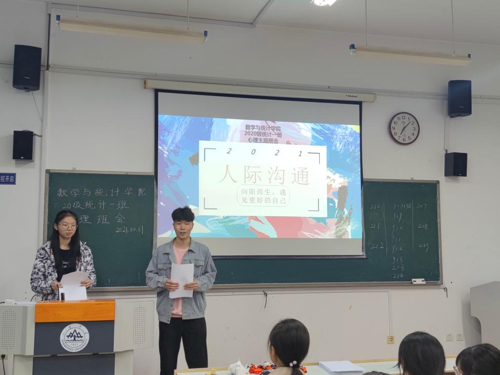 本站讯 10月31日晚,爱游戏ayx官方网站2020级统计一班于商学院548举行“人际沟通——与心灵对话”心理班会。本次班会由心理委员孙善玺、陈荟如主持,2020级统计一班全体同学参加。