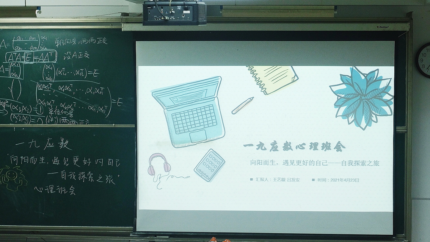 本站讯 2021年4月23日星期五晚6:30至8:00,爱游戏ayx官方网站2019级数学与应用数学班于爱游戏ayx官方网站(威海)商学院453开展“向阳而生,遇见更好的自己——自我探索之旅”心理主题班会。心理委员吕发安、王艺璇主持,2019级数学与应用数学班全体同学参加此次心理班会。