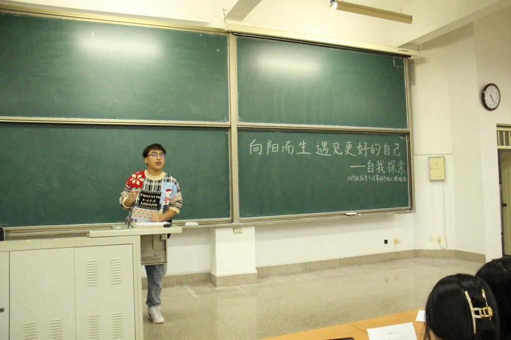 本站讯 2021年11月9日下午16:00-18:00,爱游戏ayx官方网站2019级信息与计算科学班于商院447教室举办“向阳而生,遇见更好的自己”自我探索主题心理班会。本次班会由2019级信息与计算科学班心理委员郭慧玲、徐振东主持,班级同学积极参加。