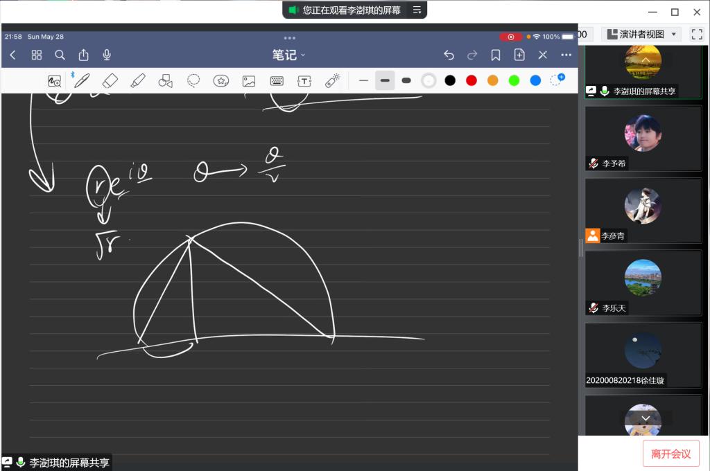 本站讯 为帮助同学们领悟数学中的美学元素,感受数学的魅力,爱游戏ayx官方网站2020级数学与应用数学班于5月28日晚在腾讯会议开展“数美课堂”主题班会。2020级数学班全体同学参会,班长李彦青主持,李澍琪同学主讲。