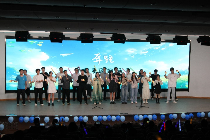 联欢会以经典动画主题曲串烧作为开场秀,熟悉的旋律瞬间点燃现场氛围,将观众带回童真年代;歌曲《不鼓自鸣》以空灵曲风带领观众“穿越”敦煌,感受千年丝路的浪漫;《牵丝戏》则将古典戏曲与现代音乐融合,用细腻唱腔诉说人间情愫,一刚一柔间尽显文化魅力;配音剧《小新的毕业大冒险》以幽默演绎传递毕业季的拼搏与不舍;幕布戏《重生之我上山大》通过光影艺术重现校园生活片段,引发全场共鸣;舞蹈《Słomo Play》以炫酷舞步展现青春活力,慢动作定格瞬间成为记忆书签;歌曲《国王与乞丐》以深情对唱探讨情感哲学;歌曲串烧《青春·未央》歌曲串烧用经典旋律串联起青春的多样色彩;《达拉崩吧》用音乐讲述有趣的冒险故事。最后,联欢会在师生合唱的《奔跑》唱响了青春追梦的激情。