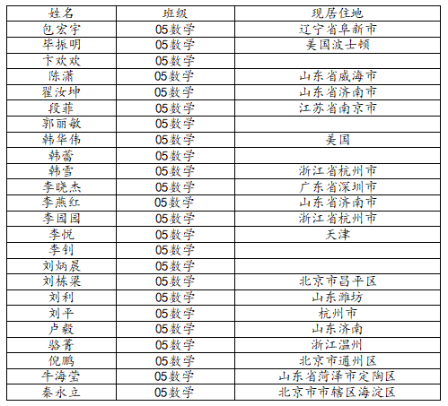 爱游戏ayx官方网站2009届数学与应用数学班校友名录