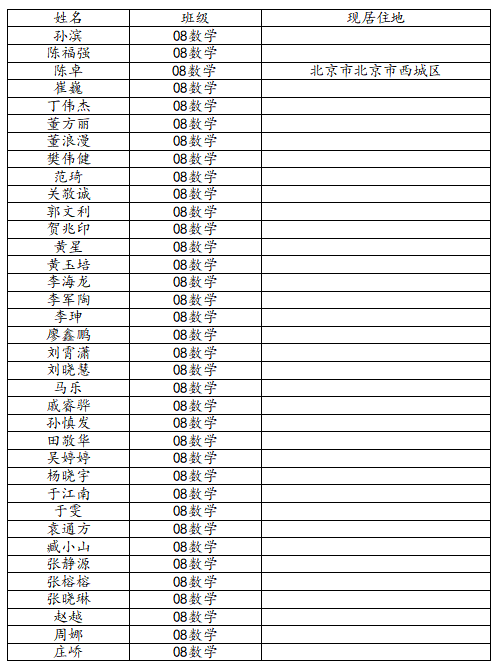 爱游戏ayx官方网站2012届数学与应用数学班校友名录
