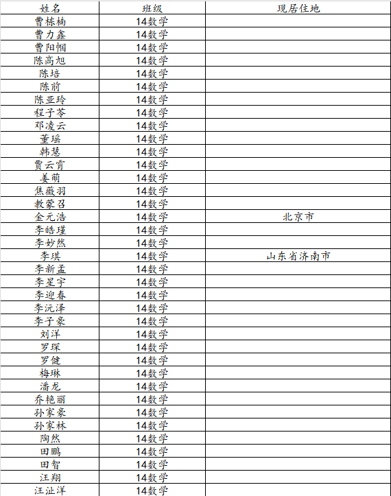 爱游戏ayx官方网站2018届数学与应用数学班校友名录