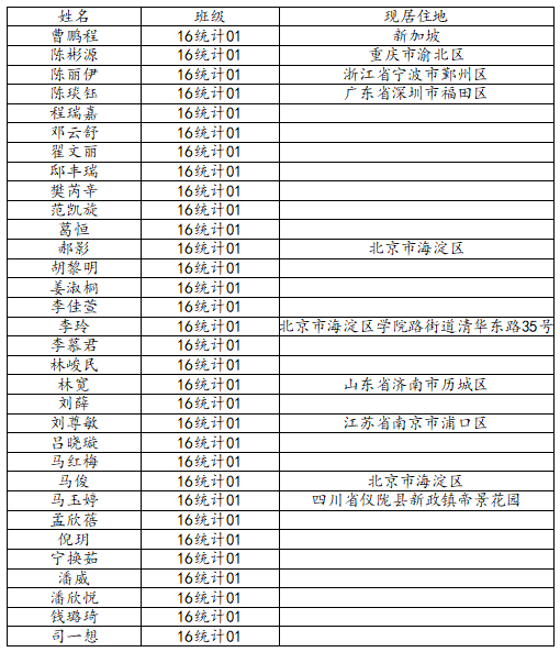 爱游戏ayx官方网站2020届统计学一班校友名录