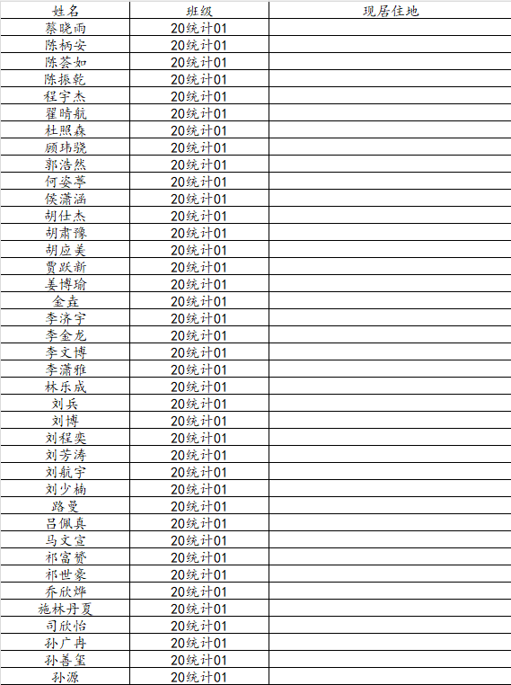 爱游戏ayx官方网站2024届统计学一班校友名录